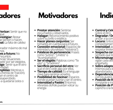 Hay que saber, que ignorarlos es un DETONADOR, los mal predisponen, los ponen de mal humor, les produce incomodidad, estrés, desconfían, sienten traición, sospechan de todo, despertando su control o denigración a medida que se acercan a su miedo más profundo ser traicionados. En cambio si le ofrecemos halagos funciona como un MOTIVADOR, no como comparación, ni como preferencia, no les gusta ser la mejor, le interesa ser la únicos.