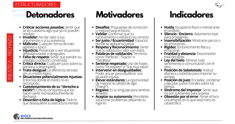 Son personas que poseen como miedo patrón al Rechazo y a la Injusticia. Estos pueden estar vibrando o ecualizados en mayor medida en el rechazo o en mayor medida en la injusticia. Son dadores de energía. Ven el mundo de una forma blanco y negro y desde su forma de ser, pensar y sentir, aportan la logica y el razonamiento. Buscan ser respetados y aceptados. Utiliza palabras como perfecto, exacto, detallista, el mejor, te destacas, sobresalir, distinto, diferente y respeto, sabiduría, justicia, justo, exacto, preciso, equitativo, equilibrado, valor, merecer para relacionarte con ellos.