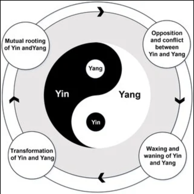 Interdependencia: Nada existe en estado puro; cada fuerza contiene la semilla de su opuesto. Interconexión y Transformación: El aumento de uno conlleva la disminución del otro (ej. noche a día). Armonía: El equilibrio entre ambas fuerzas es fundamental, esencial en la medicina tradicional china para la salud.